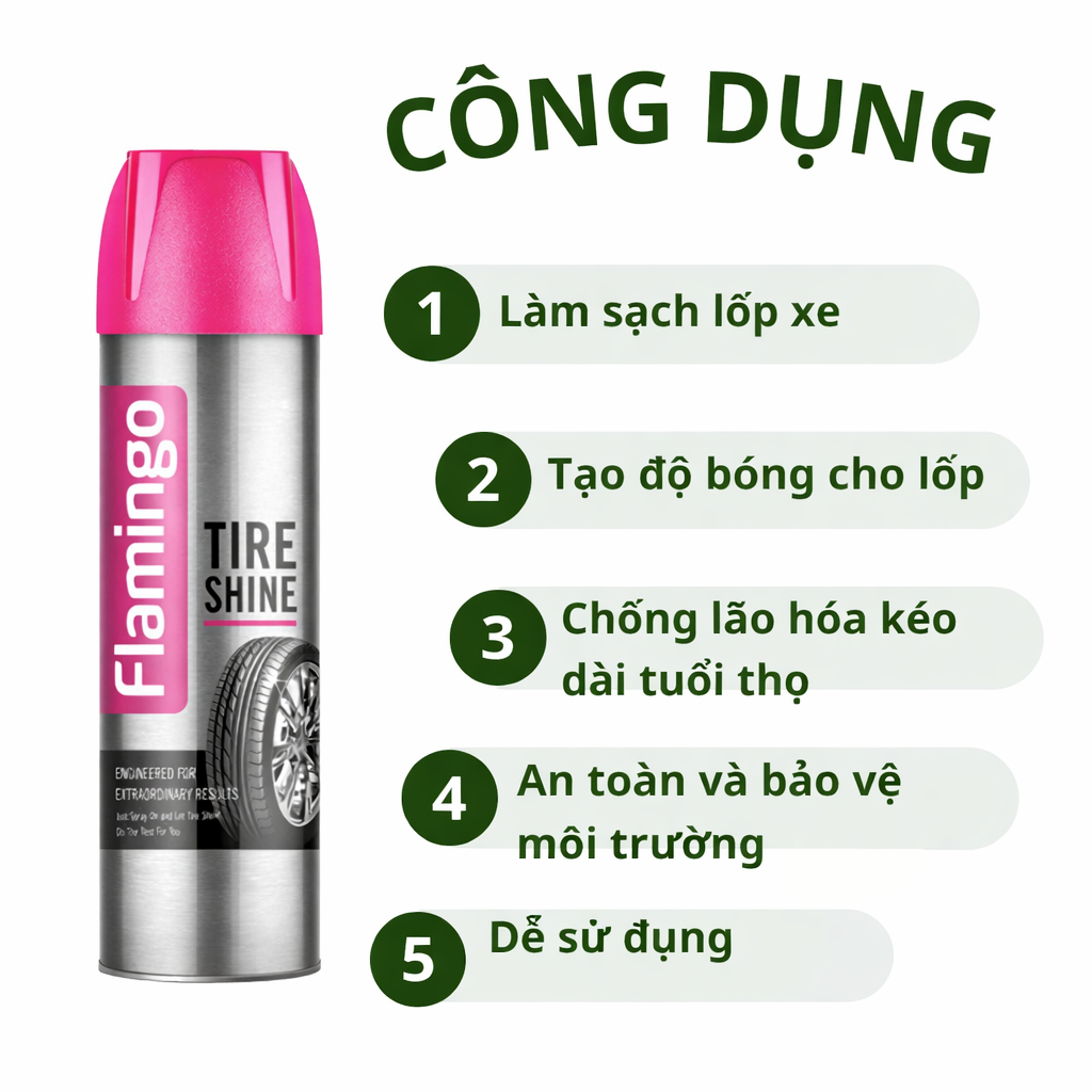 Ưu Điểm Nổi Bật Bình Xịt Dưỡng Bóng Lốp Ô Tô Flamingo