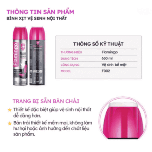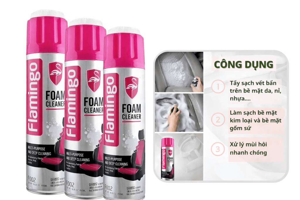 Bình xịt tẩy đa năng dạng bọt Flamingo F002 650ml là sản phẩm thiết yếu cho các bác tài xế và người tiêu dùng muốn giữ nội thất luôn sạch sẽ. Đặc biệt phù hợp với các dòng xe kinh doanh, sản phẩm này giúp loại bỏ mọi vết bẩn trên bề mặt ghế da, thảm nệm và cả các thiết bị gia dụng.