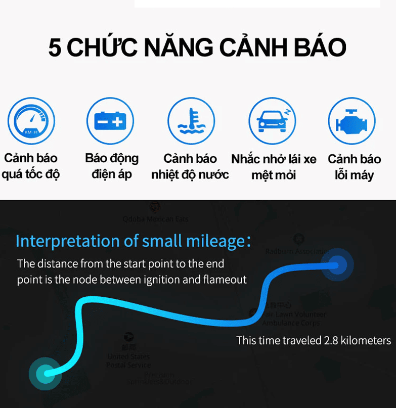 - Báo động cho ô tô: quá tốc độ, lái xe mệt mỏi, điện áp thấp
