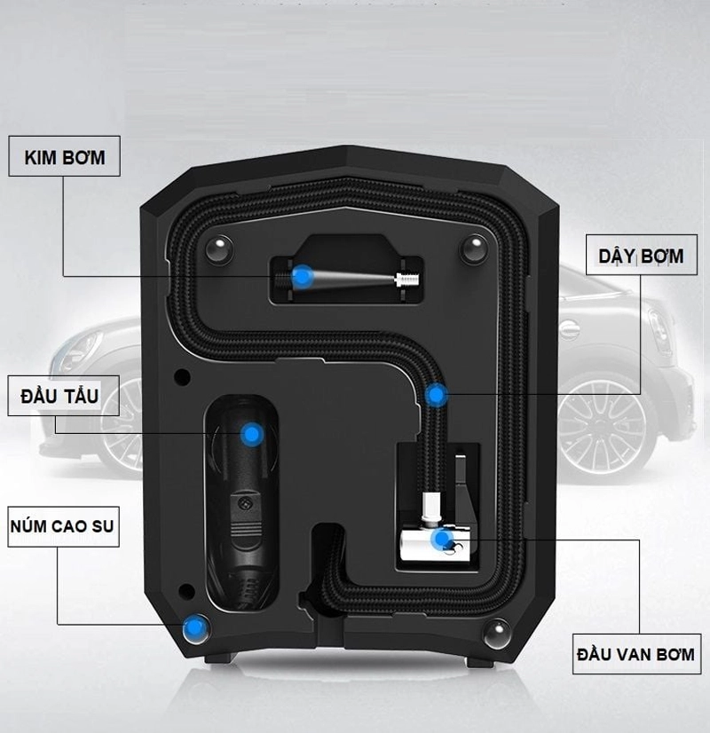 • Bơm lốp chuẩn xác: Cài trước PSI/Bar, màn hình số dễ đọc, tự ngắt khi đủ áp.