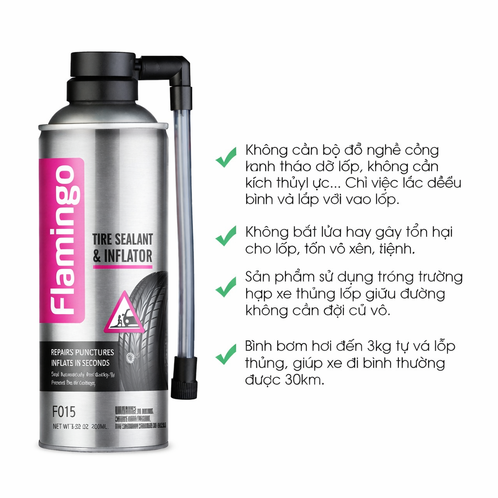 - Tên sản phẩm: Flamingo Tire Sealant & Inflator