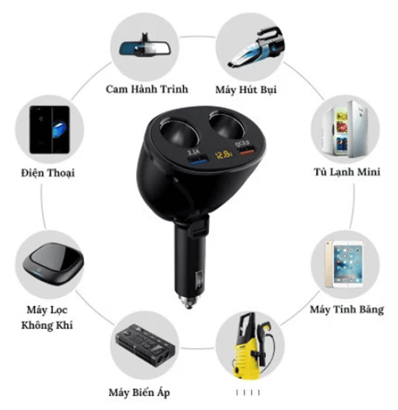 - Công dụng : Dùng để chia bộ nguồn 12V và nguồn USB trên xe ô tô.