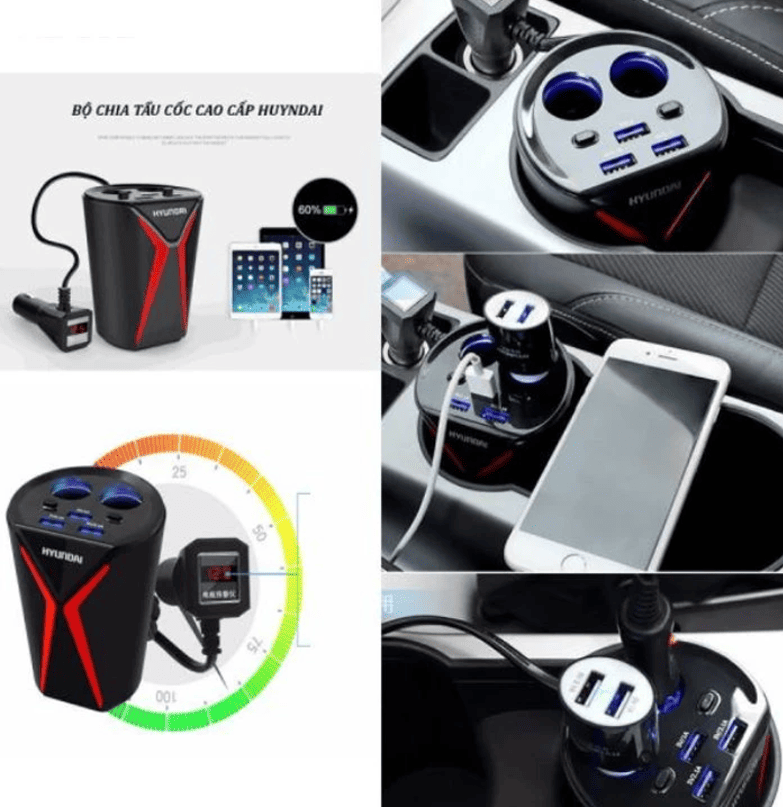 - Bộ chia tẩu hyundai hỗ trợ sạc nhanh chia ra 2 cổng usb dùng để sạc điện thoại, ipad